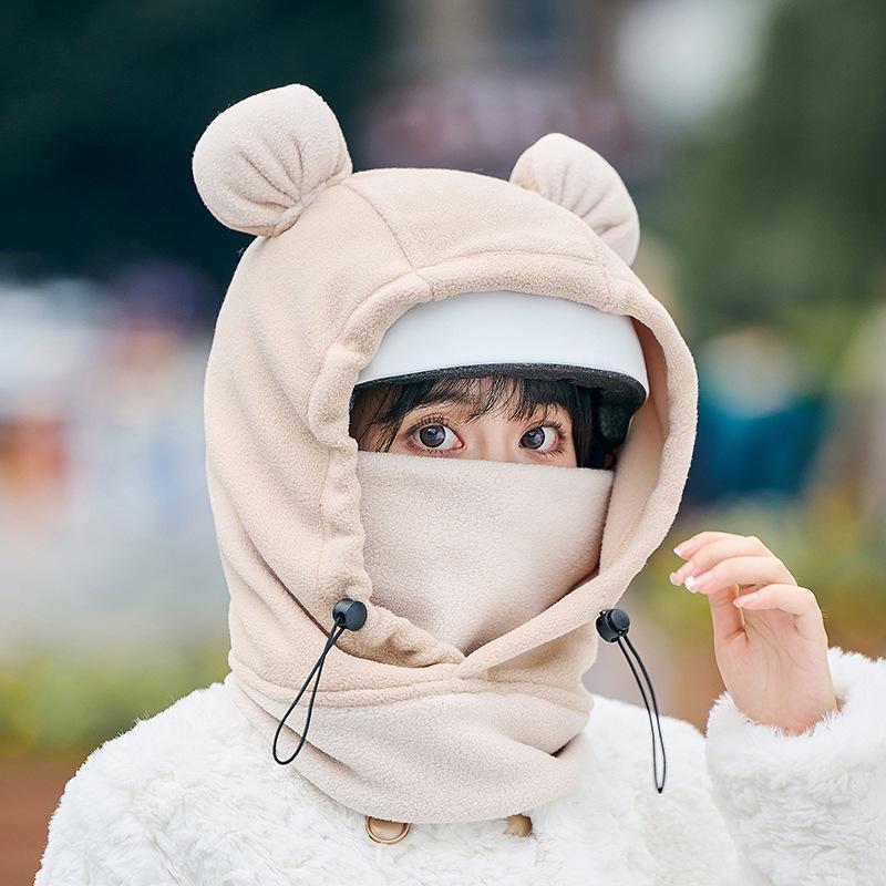 Ski head cover face protection hat female warm windproof cartoon panda ears ski ear protection cute helmet pullover hat