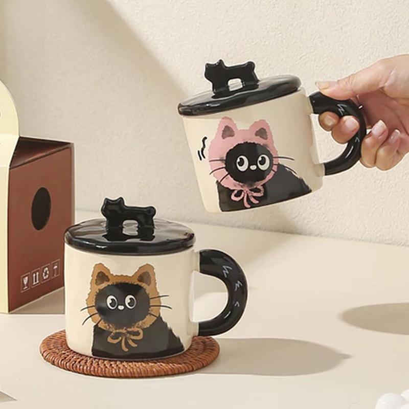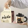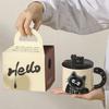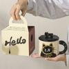 Roztomilý keramický hrnek s víčkem s kočkou, šálek na kávu, hrnek na pití, kancelářský dárek, praktický dárek k narozeninám