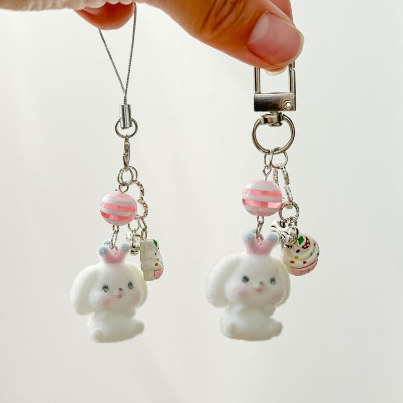 Cartoon Flocking Three-Dimensional Rabbit Keychain For Women Cute Bag Pendant Decoration Kawaii Mobile Phone Chain Gifts