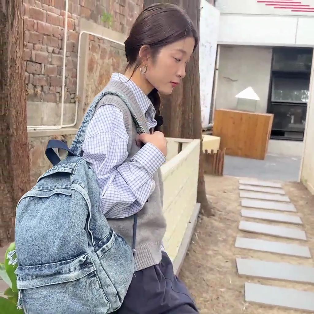 Retro džínový batoh s velkou kapacitou studentská školní taška