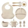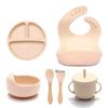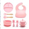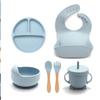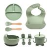 3/6/8Pcs Baby Silicone Tableware Kids Utensil Bib Straw Cup Bowl Suction Plate Feeding Essential Set