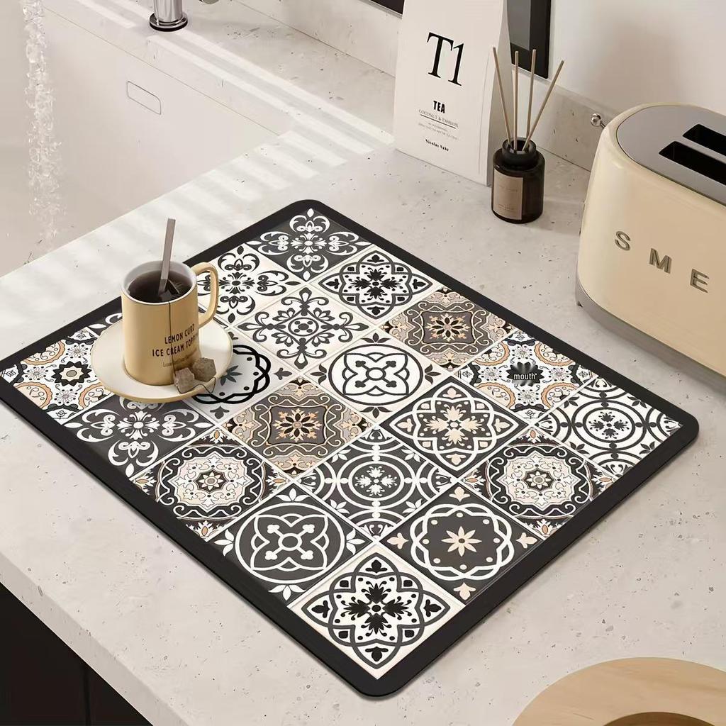 Retro Floral Anti-scalding Water-absorbing Coaster: Non-slip, Dirt-resistant, Easy-to-Clean Diatomaceous Earth Coffee Mat