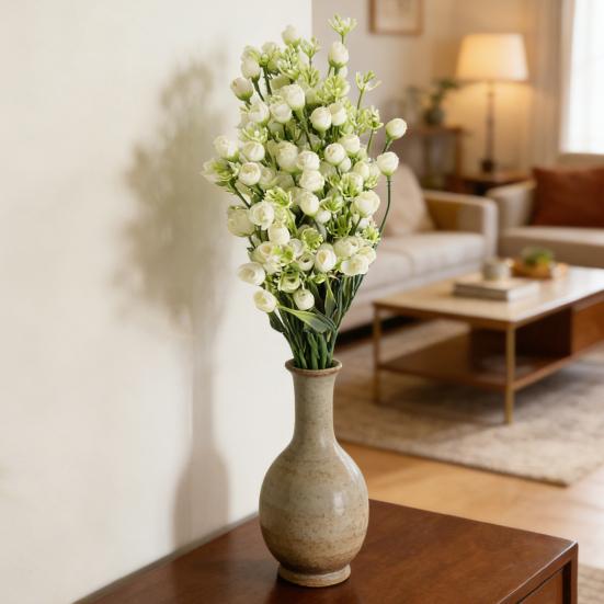 Všestranné dekorativní použití: Ideální pro různá prostředí, tato umělá květinová aranžmá doplní domácí interiéry, kancelářské stoly, výzdobu akcí a speciální příležitosti.. Jeho přirozená textura a realistické zdobení se hladce hodí k různým stylům interiéru a dodávají elegantní nádech.