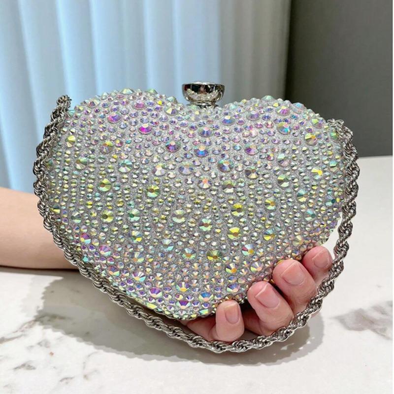 1pcs PU Leather Heart Shape Diamond Bag Women's Chain Shoulder Crossbody Bag Handy Shoulder Bag Suitable for Daily Use