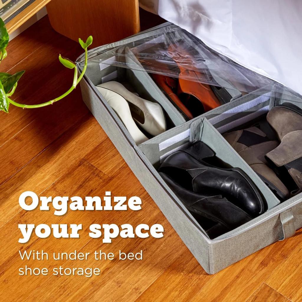Underbed Shoe Storage Fabric Foldable Shoe Box Under Bed Shoe Storage Fits 6 Pairs Shoe Box Dividers With Clear Cover Handles
