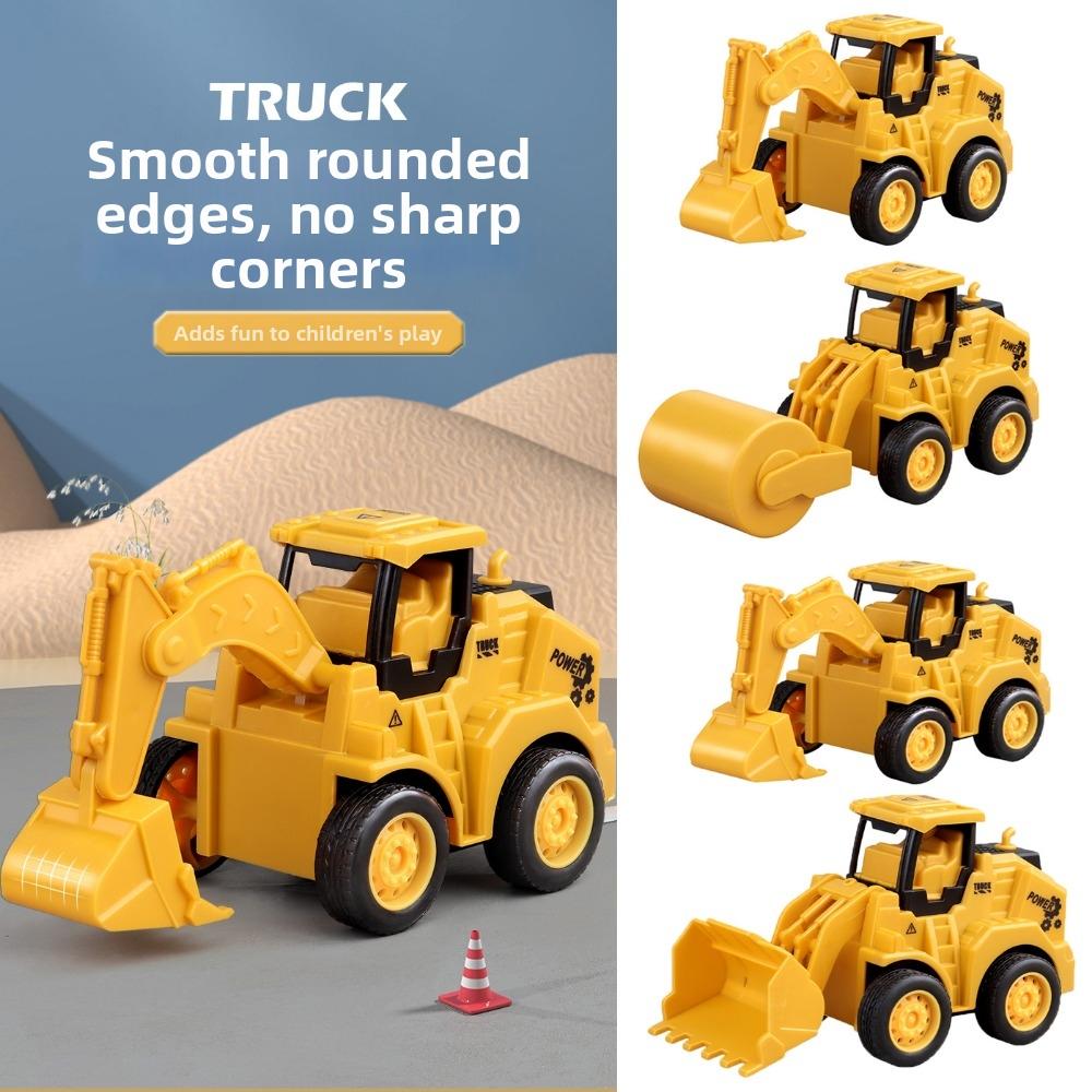 Yellow Press Sliding Press Car 6 Styles Excavator Roller Bulldozer Children Educational Toys