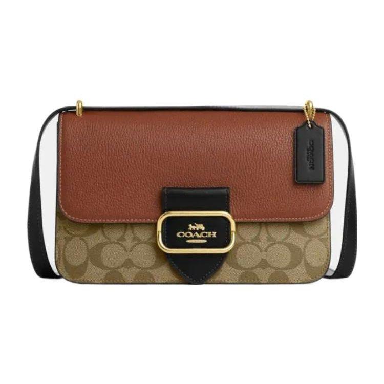 Coach Morgan Square 25 Classic Monogram Flap Snap Fabric With Leather Shoulder Crossbody Bag Medium Women bags Khaki Brown CM713-IME7V