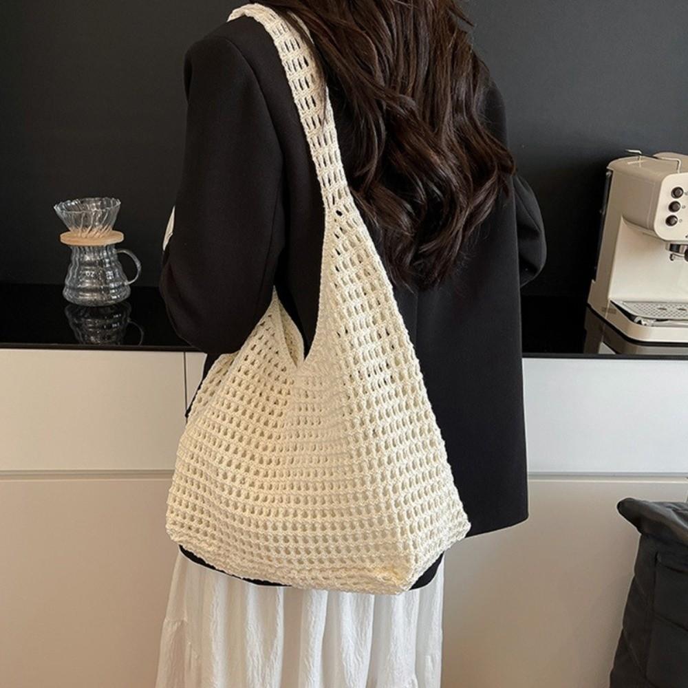 Large Capacity Crochet Mesh Tote Bag Bohemian Style Woven Handbag Knitted Shoulder Bag Ladies