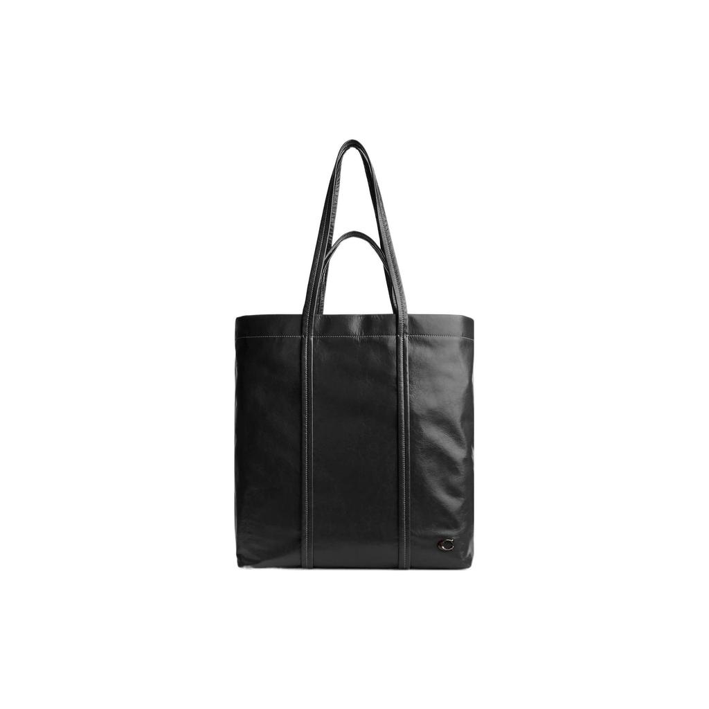 Coach Hall 35 Solid Color Logo Stripe Seam Zipper Pocket Leather Tote Bag Men tote bags Black CO839-BLK