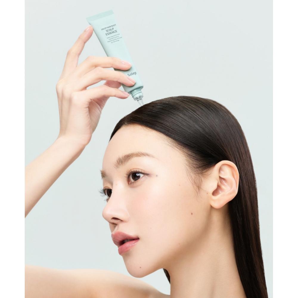 SOLEP Hair Root Scalp Essence 40ml is a scalp cooling filter essence that refreshingly cares for heat sensations and provides volume from the roots of the hair. It focuses on fine hair and hair loss, making it suitable for dyed hair. After use, it features a lightweight texture that absorbs quickly, preventing stickiness and is suitable for all scalp types. It can be used after evening shampoo or as a protective layer before styling, making it suitable for daily use morning and night. Its subtle fragrance makes it easy to use every day.