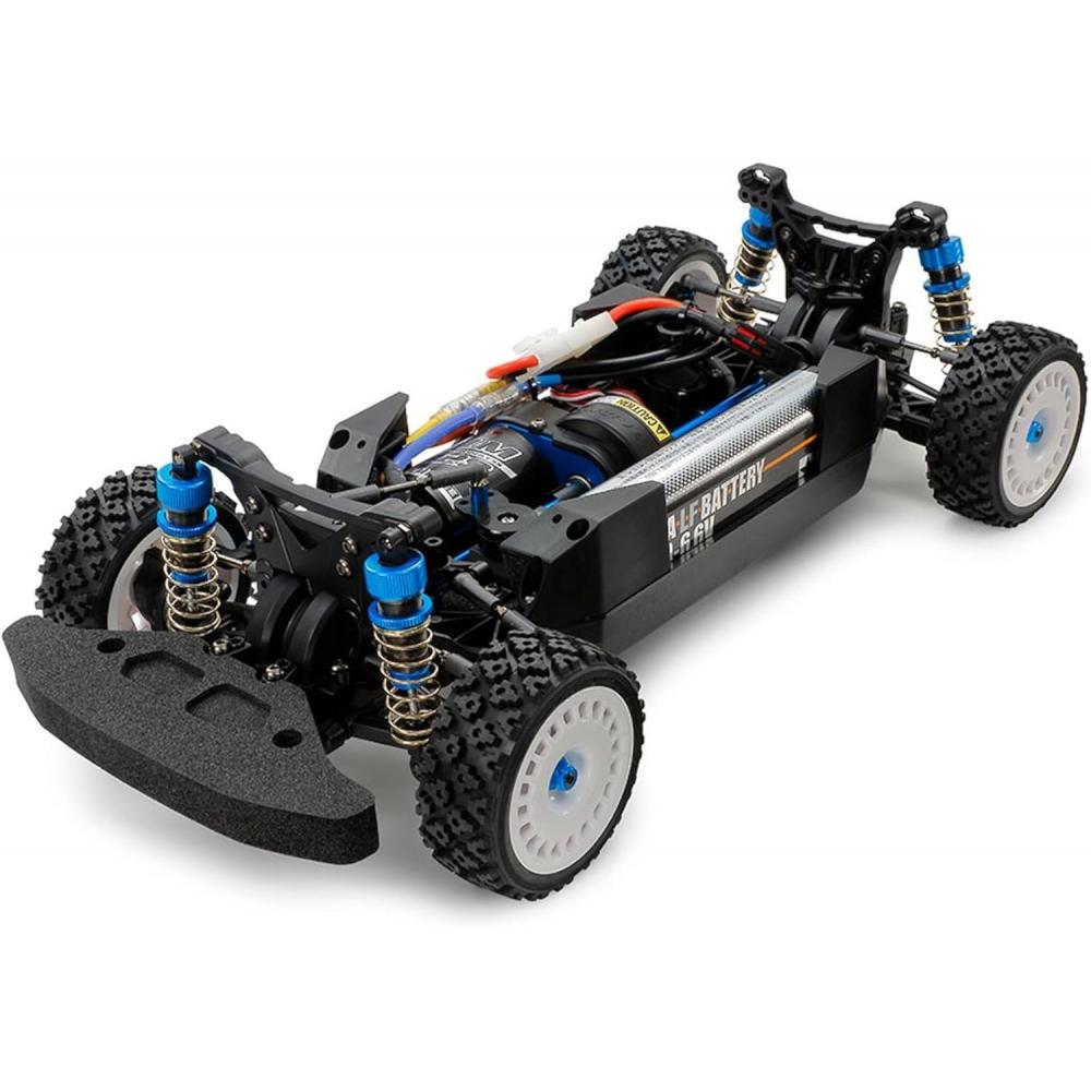 The Tamiya 1/10 Electric RC Car Series No. 707 1/10RC XV-02 Pro Chassis Kit is a rally car model that provides excellent performance and a dynamic driving experience. This product features a vertically mounted motor at the front mid with power transmitted through uniform-length propeller shafts from the central spur gear. It is equipped with a 4WD drive system that enables driving in various environments, allowing for adrenaline-pumping rally driving.