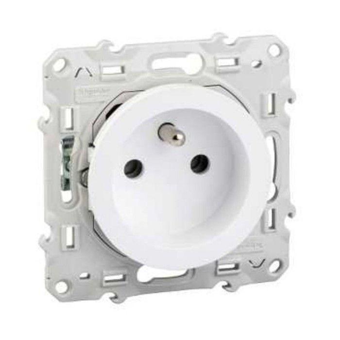 Prise de courant encastrée 2P+T - SCHNEIDER ELECTRIC - Odace - blanc - bornes sans vis - fixation par griffes