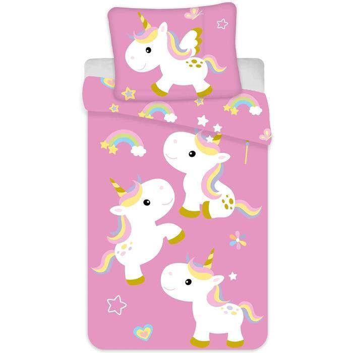 Parure de lit 2 pièces - Licorne - Coton renforcé - Réversible - Boutons-pression