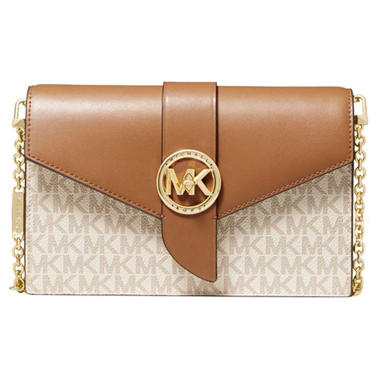 Michael Kors MK Charm Logo Print Leather Chain Crossbody Bag Small Women bags Vanilla-White Acorn-Brown 32S0G00C6B-149