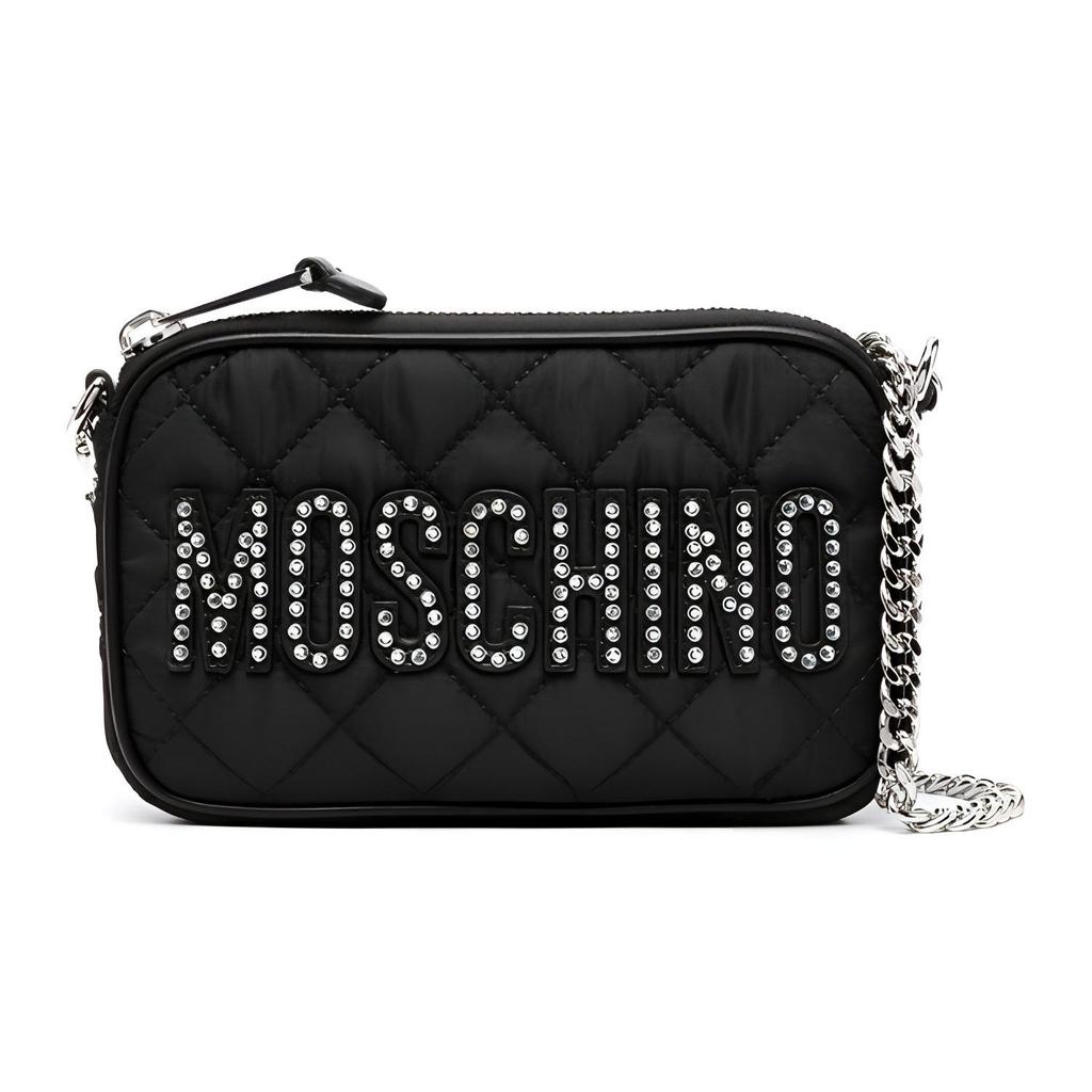 Moschino Chain Strap Crystal Embellished Nylon Shoulder Crossbody Bag Women bags Black B74208201-3555