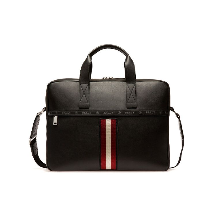 Bally Hektor Three-Color Striped Leather Briefcase Men briefcase Black 6227940