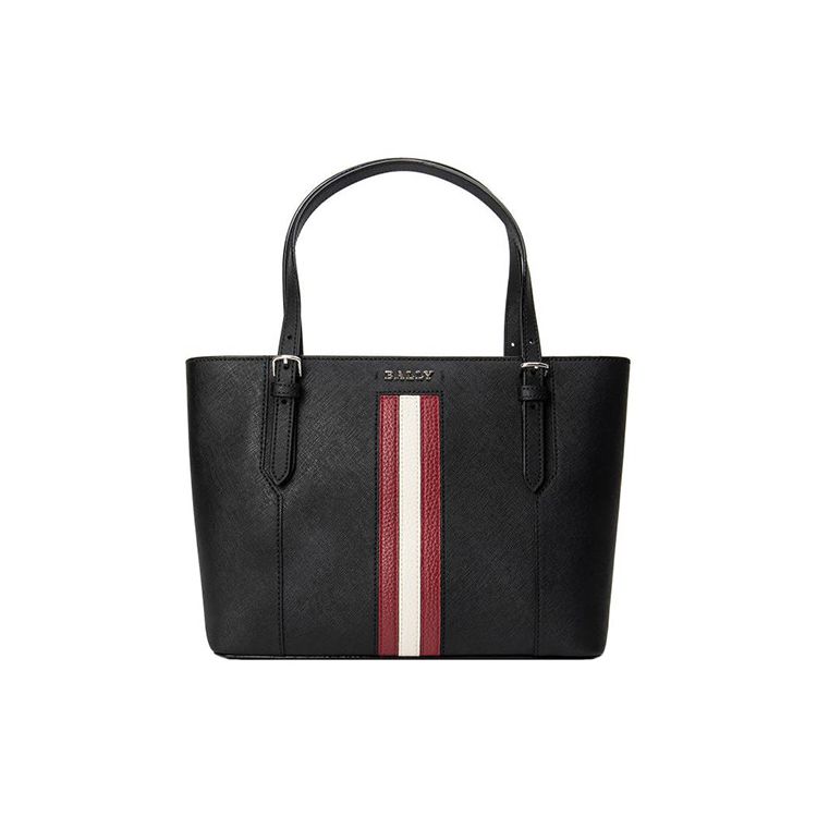 Bally Classic Casual Commuter Vintage Red And White Striped Leather Tote Bag Women tote bags Black 6211738-BLACK