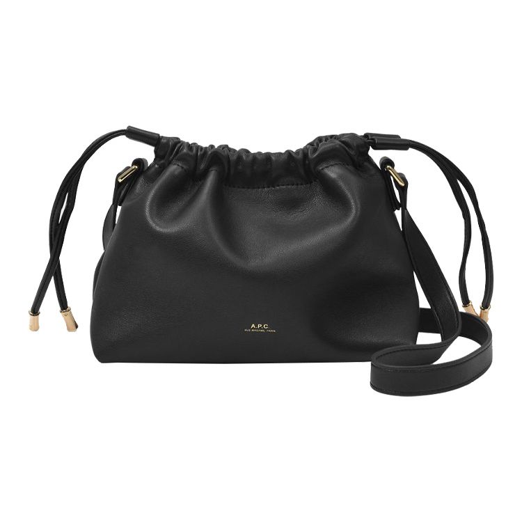A.P.C Solid Color Minimalist Fashion Smooth Drawstring Leather Shoulder Crossbody Clutch Women bags Black PUAAT-F61582