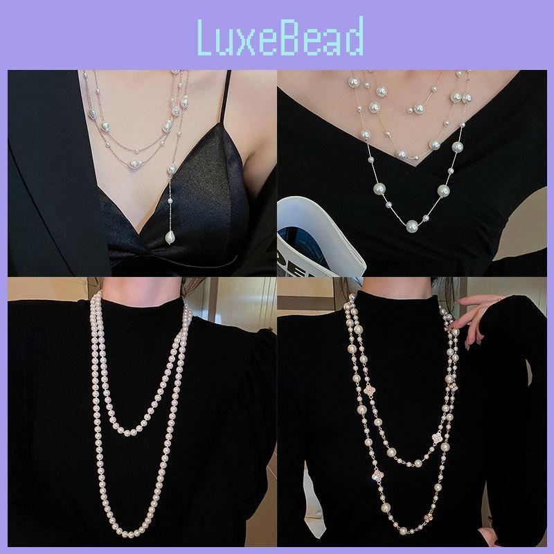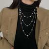 This women's fashion necklace features a geometric design with imitation pearl accents and a electroplated finish for a refined look. Measuring approximately 32 inches in length, it offers a versatile accessory for daily wear or formal occasions. Crafted from durable materials, it resists tarnishing and maintains its luster. Ideal for pairing with sweaters or dresses, this necklace elevates any outfit while providing easy maintenance with a gentle wipe.