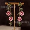 French Retro Pink Enamel Flower Earrings Women Vintage High-end Exquisite Long Fragrant Style