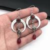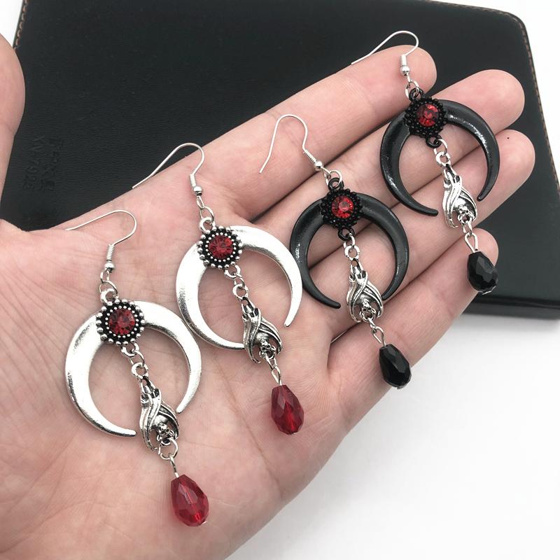 Exaggerated Horn Earrings Personality Bat Red Bead Pendant Earrings Women Men Dark Gothic Punk Earrings Jewelry Wholesale