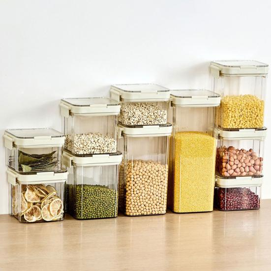 Dostupné ve více velikostech, splňuje rozmanité potřeby pro skladování obilovin, koření, sušeného ovoce, pochutin a dalších.. Je vyroben z potravinářského PET materiálu, je bez zápachu, odolný proti korozi, bezpečný pro styk s potravinami, snadno se čistí a je opakovaně použitelný.. Stohovatelný design ve tvaru zakladatele maximalizuje vertikální prostor a udržuje kuchyňské skříňky čisté a uspořádané.