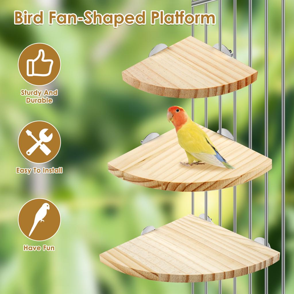 6Pcs/Set Fan-shaped Bird Parrot Wooden Stand Rack Parrot Perch Corner Shelf Bird Cage Accessory for Small Animal Hamster 3 Sizes
