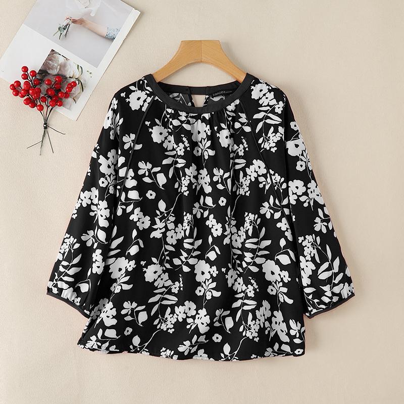 ZANZEA Dámská ležérní květinová halenka s kulatým výstřihem a 3/4 rukávem