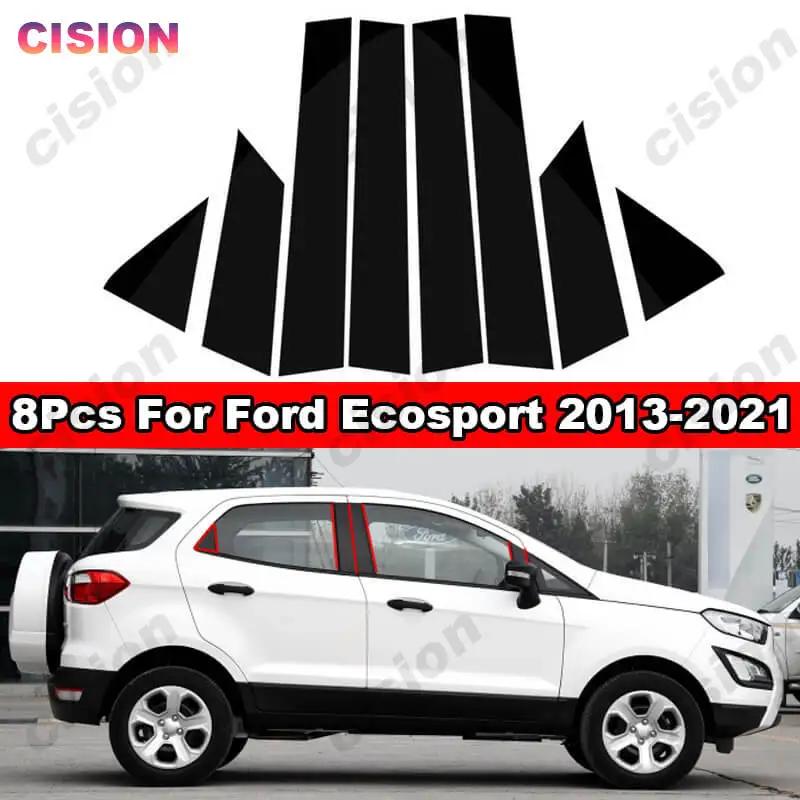 Pro Ford Ecosport 2013- Zrcadlový efekt Kryt sloupků dveří a oken B C Černá uhlíková vlákna PC Materiál Samolepka