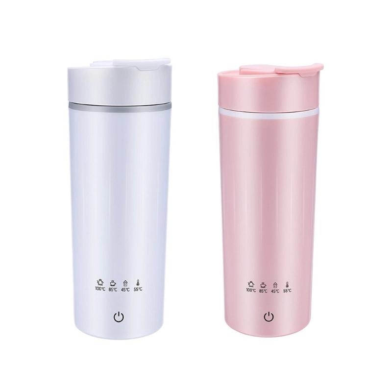 Stainless Steel Water Kettle Leakproof Double Layer Electric Heating Cup with Detachable Cord for Convenient Travel