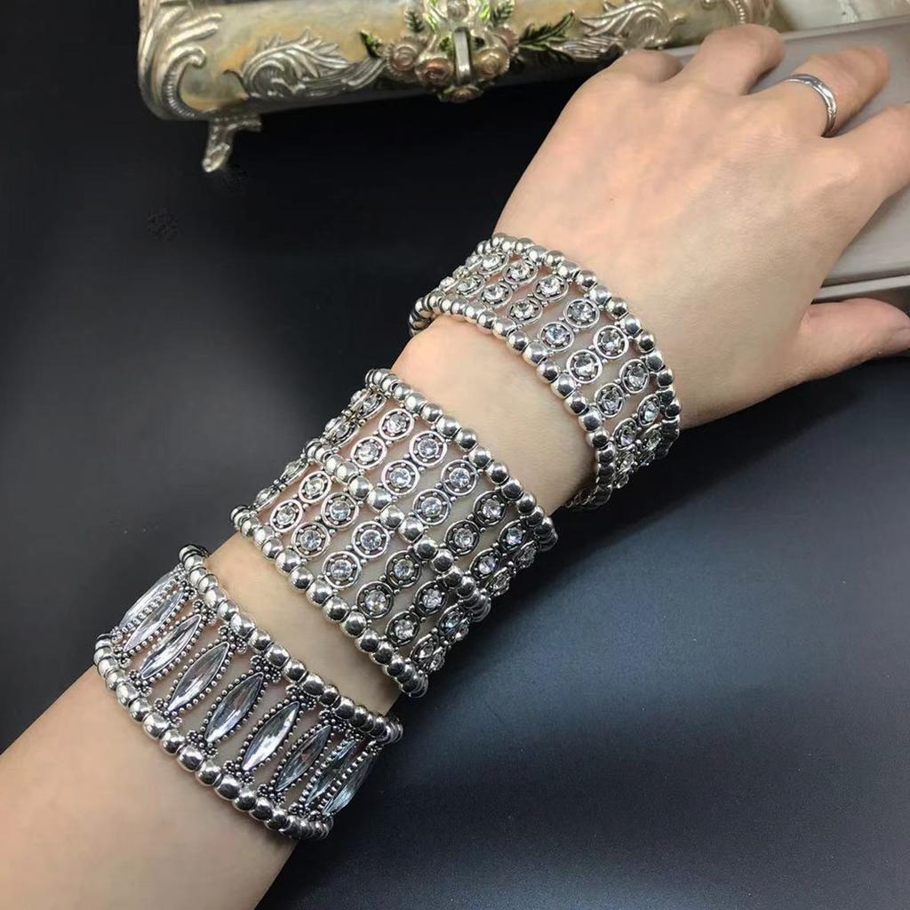 European and American women's bracelet retro inlaid with rhinestones elastic wide bracelet literary retro style