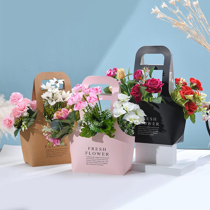 Foldable Waterproof Flower Bag Letter Box Kraft Paper Gift Bags 3Pcs Handbag