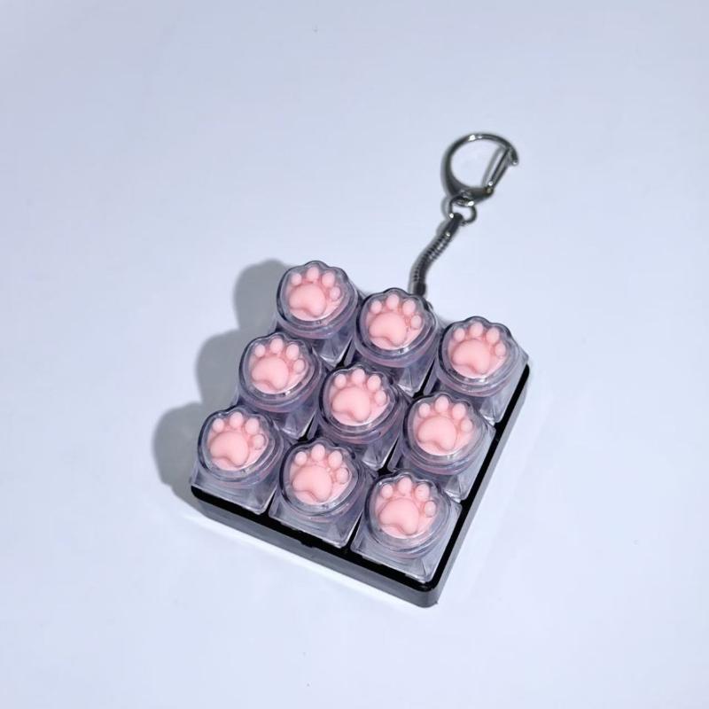 1Pcs Silicone Cat Paw 9 Keys Keyboard Keycaps Keychain Without Light Toy Anti-Anxiety Point Keycaps Stress Relief Toy