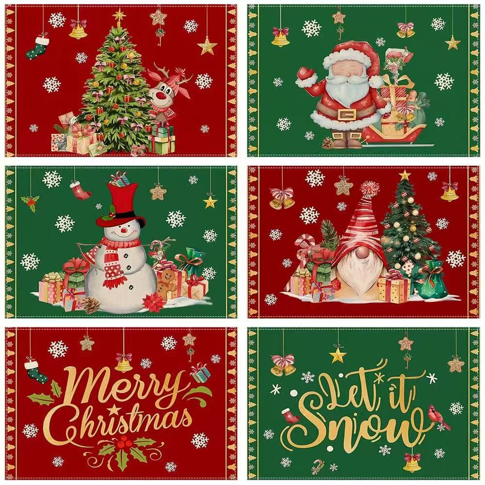 Christmas Cotton Linen Placemats Snowman & Santa Claus Decorated Dining Table Mats Insulation Solid Color Holiday Home Decor