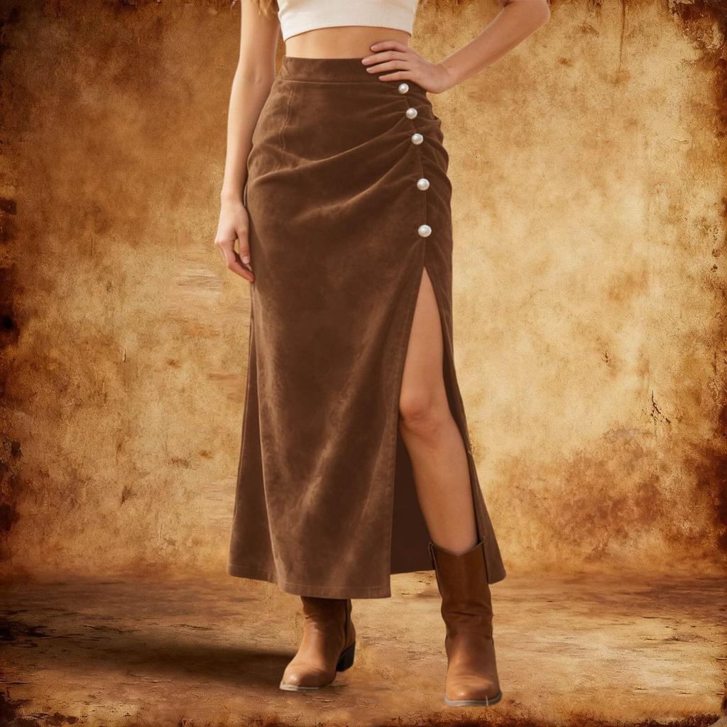 Ladies' Retro High Waisted Slimming Bag Skirt, Mid Length With A Split Half Skirt And Temperament