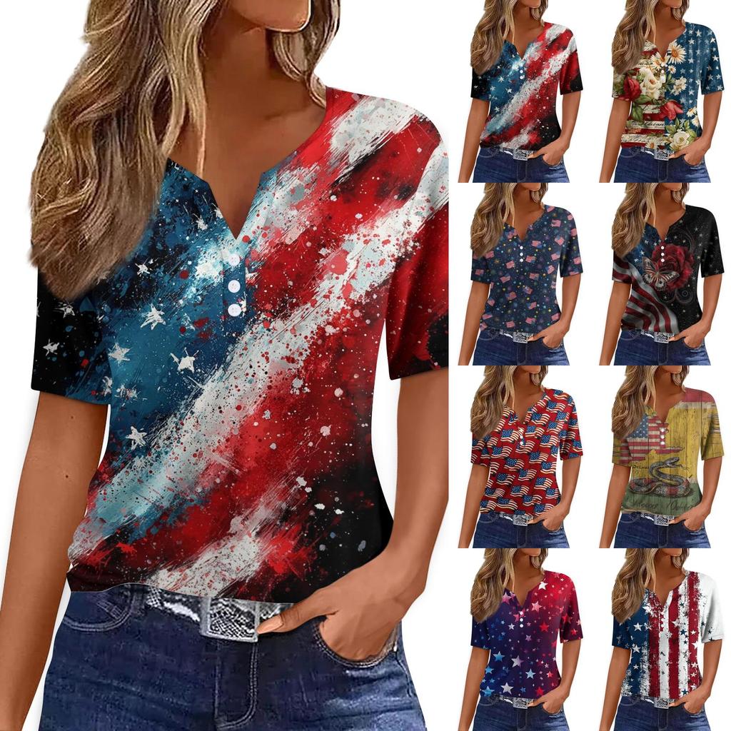 Women's T Shirt Tee Print Button Short Sleeve Daily Weekend Fashion Basic V- Neck Regular Top