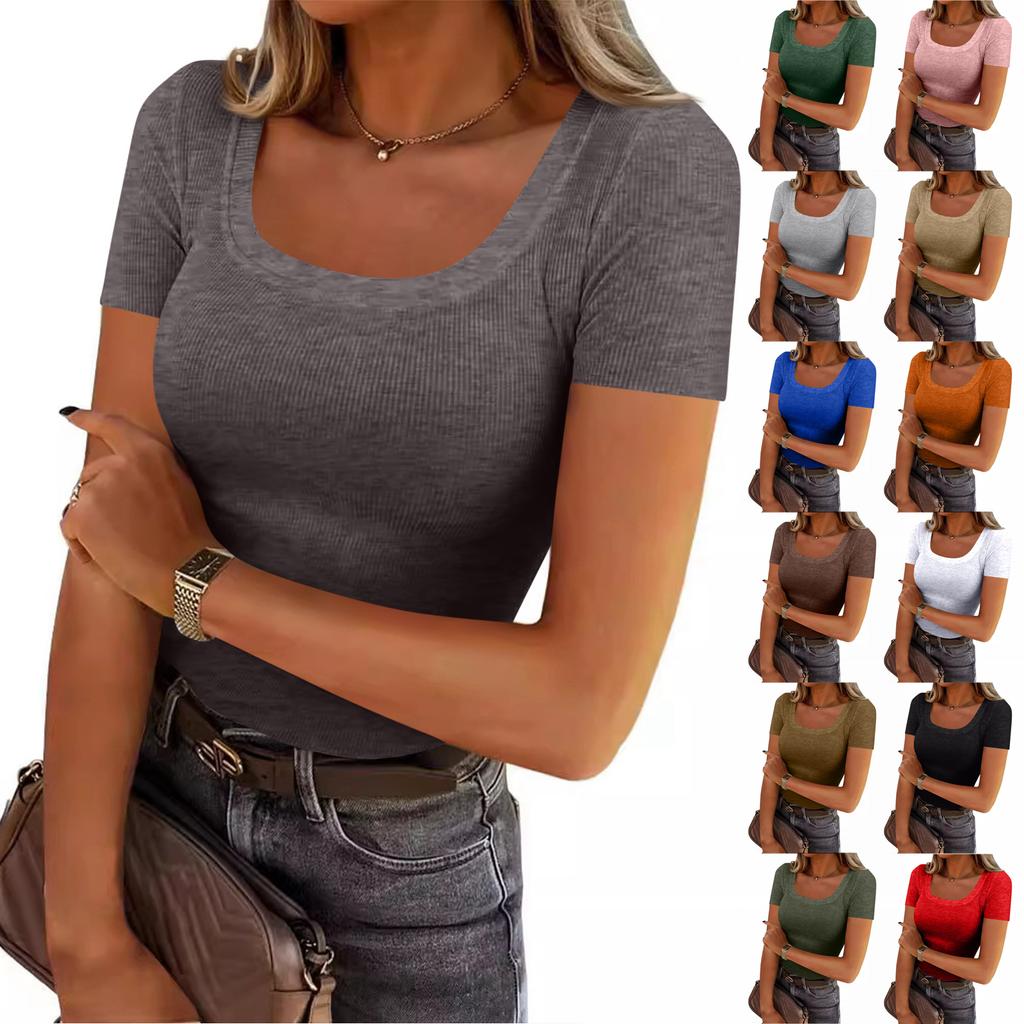 Women Tops Basic Tees Trendy Short Sleeve Shirts Casual Fitted Ribbed Tops