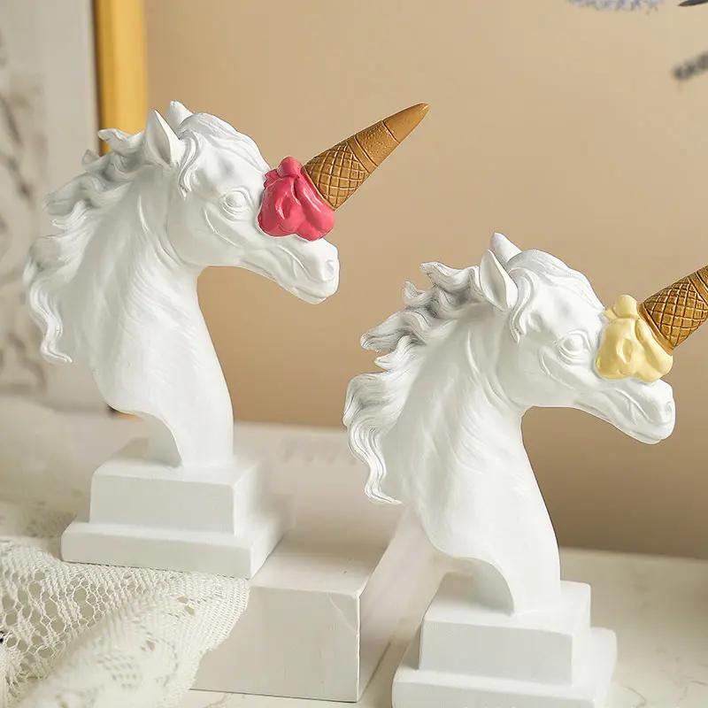 Resin Handicraft Unicorn Decorative Figurines Ice Cream Horse Funny Artificial Animal Sculpture Home Decor Accessories Crafts