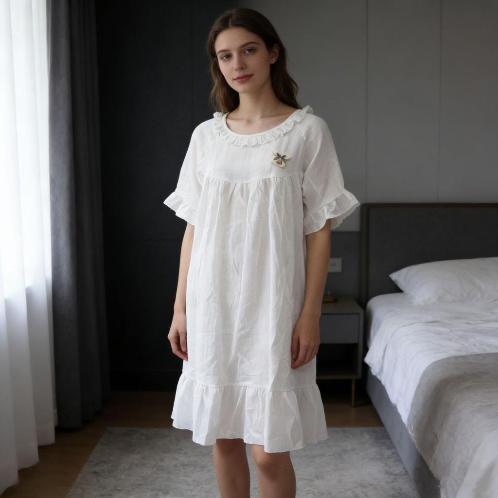 Sleeping Dress Women's Summer Lightweight Loose Large-sized Ruffled Long-sleeved Sweet Pajamas