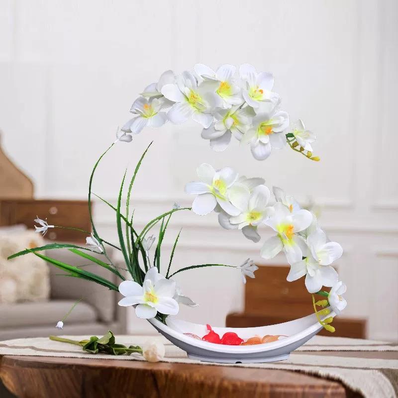 Simulated Butterfly Orchid Ceramic Flowerpot Fake Flower Set Decoration Home Livingroom Entrance Desktop Bonsai Ornaments Crafts