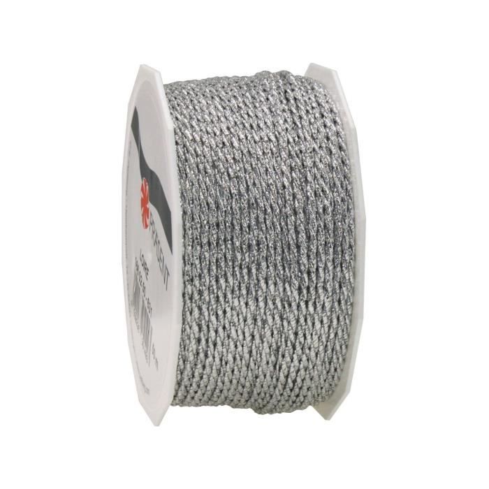 Cordon torsadé métallique - PRa„SENT LOIRE - 50m - Ø 2mm - Polyester - Argent
