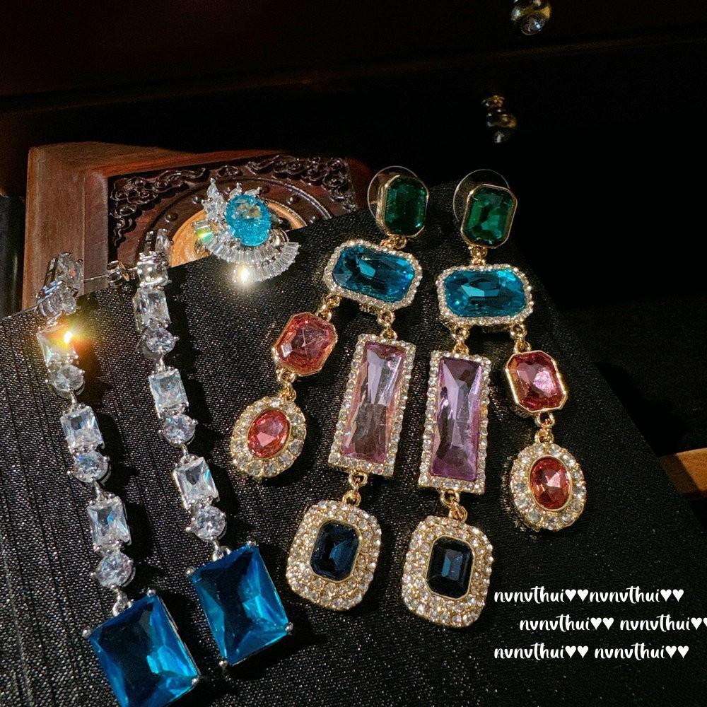 Tourmaline Abacus Rainbow Water Drop Gemstone Earrings, Antique Feeling, Plated With 18K Gold, Water Blue Sugar Cube Zircon Earrings Combination