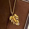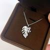 Vintage Antique Brushed Point Diamond Gold Branches Jade Leaf Necklace Exquisite Niche Design Leaf Pendant Collarbone Chain