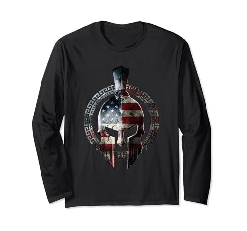 American Spartan Helmet USA Spartan Veteran Gladiator Flag Long Sleeve T-Shirt