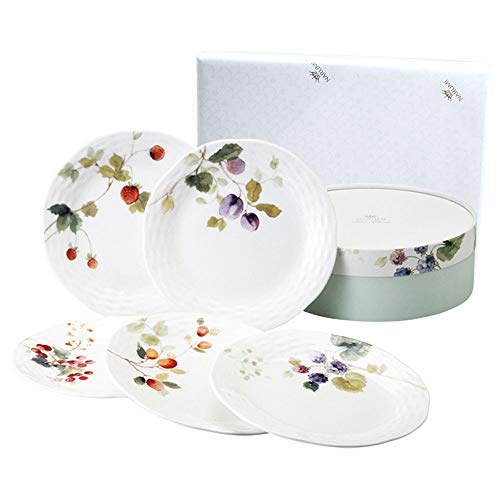 NARUMI Lucy Garden Plate Set, 17cm Diameter, Berry Pattern, 5-Piece Set, Stylish and Cute Relief Design, Wedding Gift, Mother's Day Gift, Microwave an