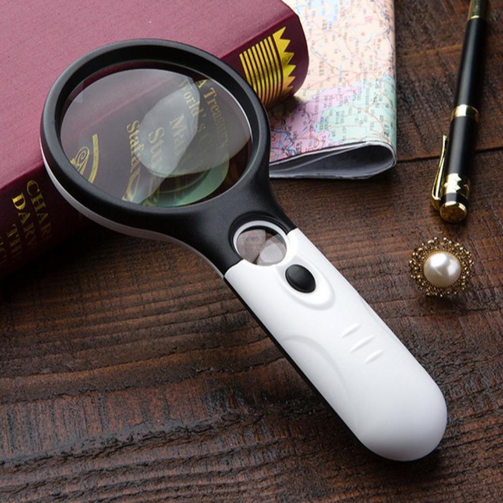 1PC handheld magnifying glass 45 times double lens reading elderly portable large mirror high definition strong light LED
