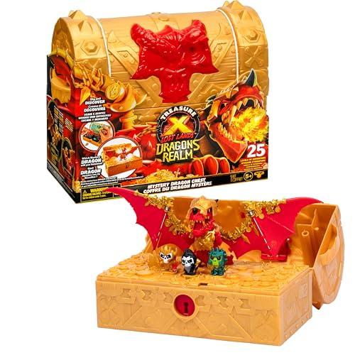 At the heart of Lost Lands lies a legendary treasure chest, waiting for young adventurers to uncover its secrets! With the turn of the key, explorers' epic journey begins, spanning 25 thrilling stages of discovery. Their first challenge is to forge the perfect tool to shatter the powerful Dragon Block and reveal the riches hidden within. Among them are the Golden Nugget, the Lost Claw, and the Heart of Heroes, each playing a pivotal role in unlocking the chest's ultimate surprise. Your child will be tasked with carefully placing these treasures on the chest's map, closing it, and inserting the Dragon Eye to reveal the ultimate surprise hidden within. With the triumphant lifting of the lid, a magnificent dragon awaits to be unleashed! Will a fiery Red Dragon or a majestic Gold Dragon emerge? But the adventure doesn't end there. Explorers will outfit their dragons with armor and saddles, choose three brave riders, and embark on a soaring adventure on an epic quest. Adventure and discovery await with the Treasure X Lost Lands Mystery Treasure Chest.
