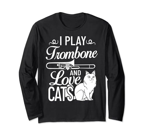 Cat, Trombone, Music, Brass Instrument Player, Long-Sleeve T-Shirt