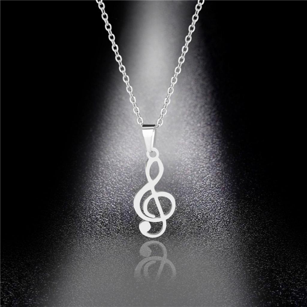 Stainless Steel Musical Notation Shaped Pendant Necklace For Women Men Fashion Classic Silver Color Music Symbol Choker Jewelry