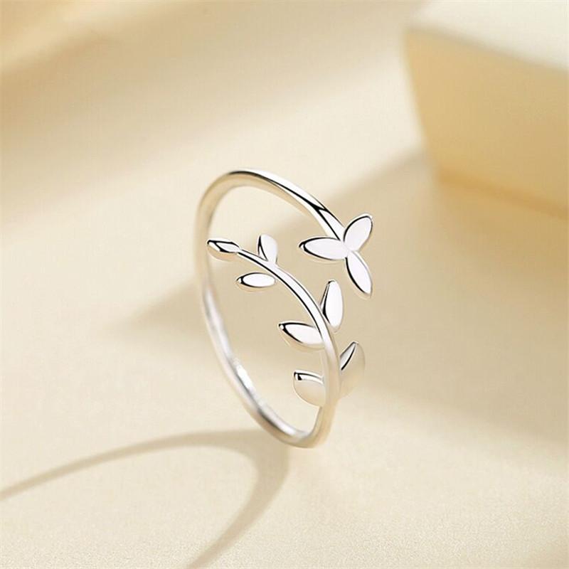 New Simple Literature Art Olive Leaf 925 Silver Jewelry Fashion Branch Personality Opening Rings R217